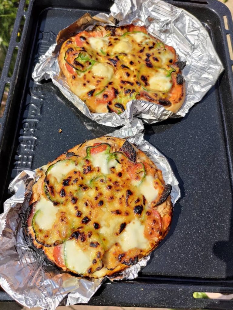 今回は ピーマン、トマト、チーズをのせて焼きました🍕